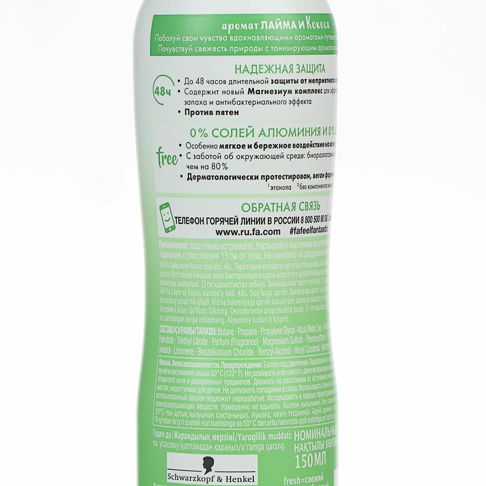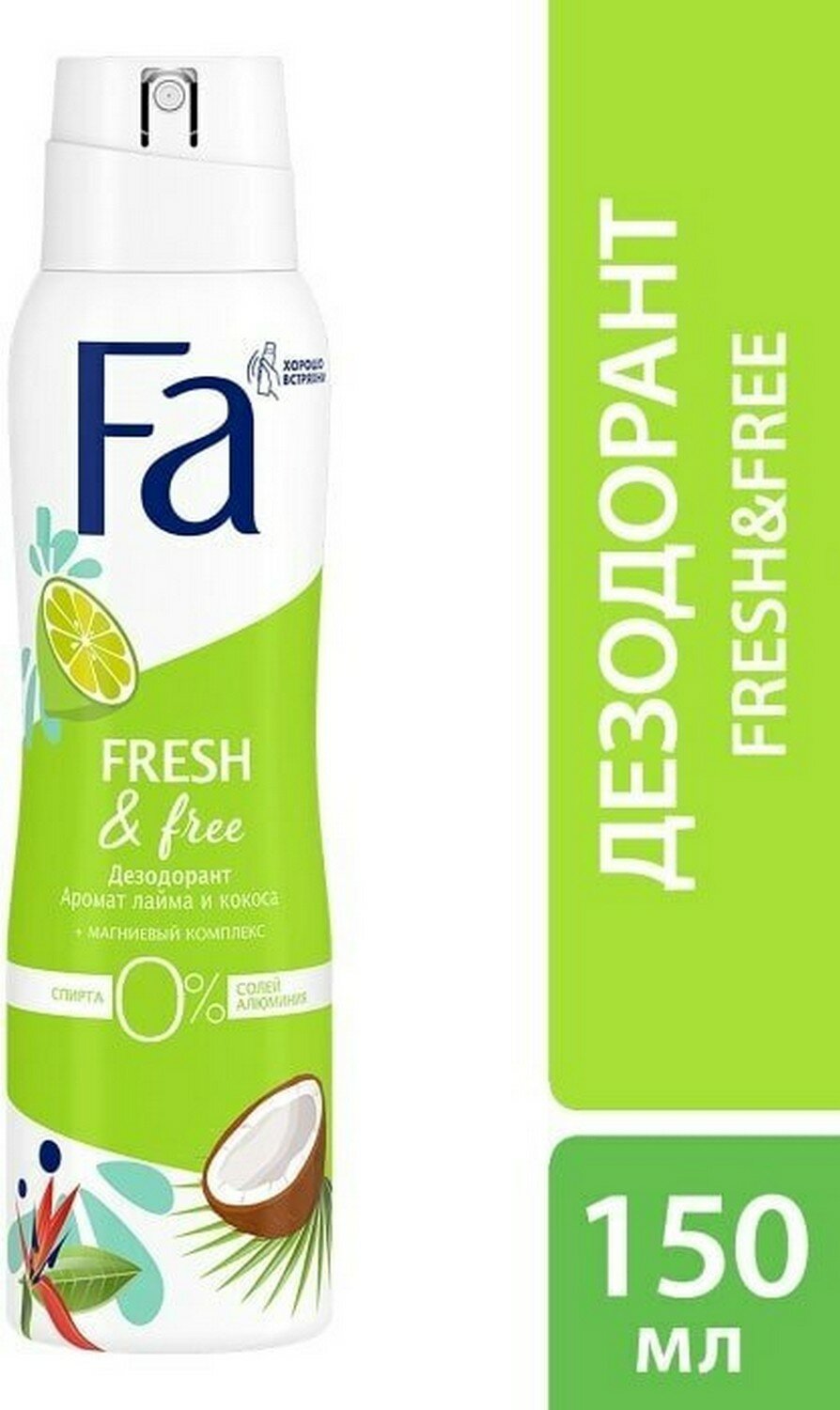 Fa Дезодорант Fresh&Free аромат лайма и кокоса, спрей, 150 мл, 140 г, 150 шт.