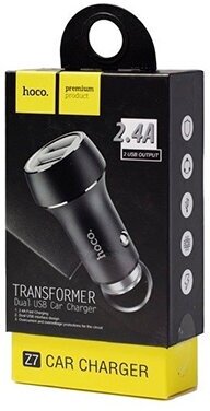 Автомобильное зарядное устройство на 2 USB, Hoco Z7 Transformer Dual Car Charger 2.4A, серебристое