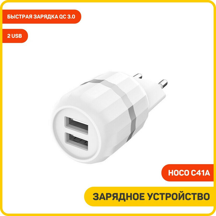 Сетевое зарядное устройство (СЗУ) Hoco C41A (2 USB) + кабель Type-C, 2.4 А, белый