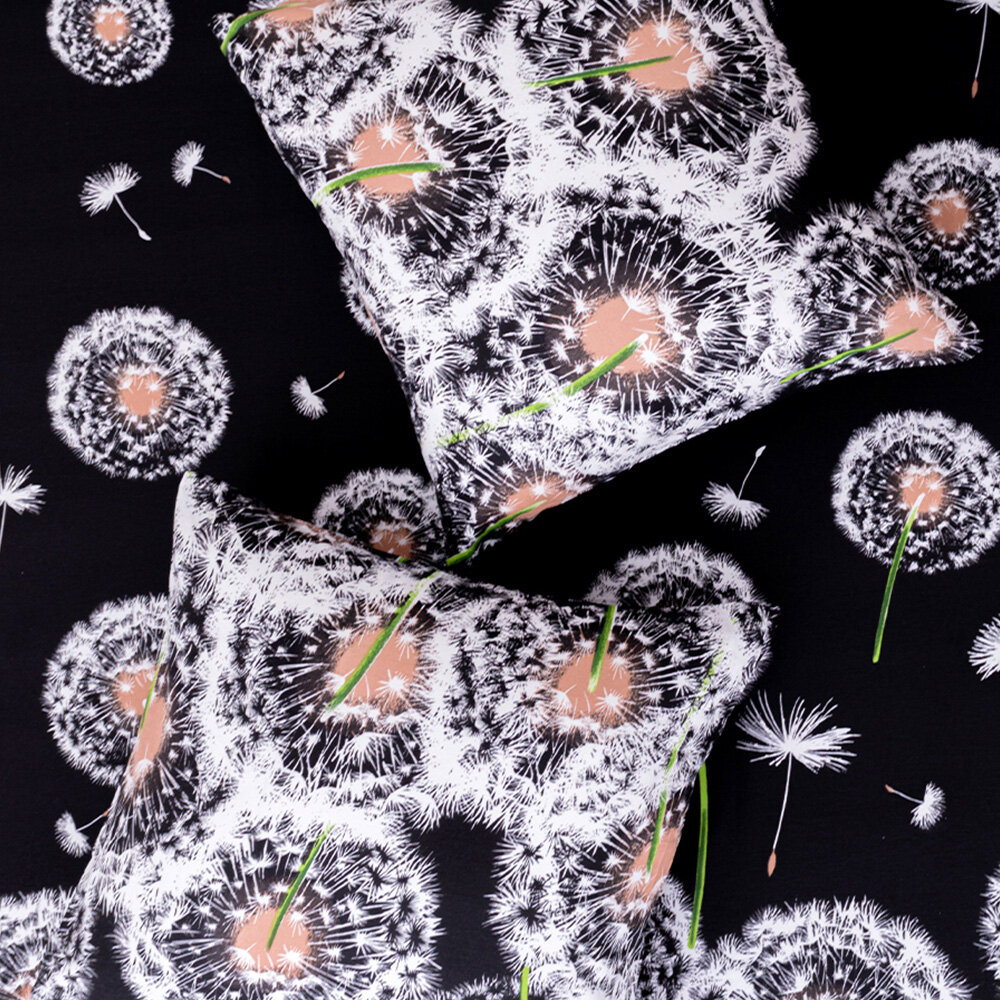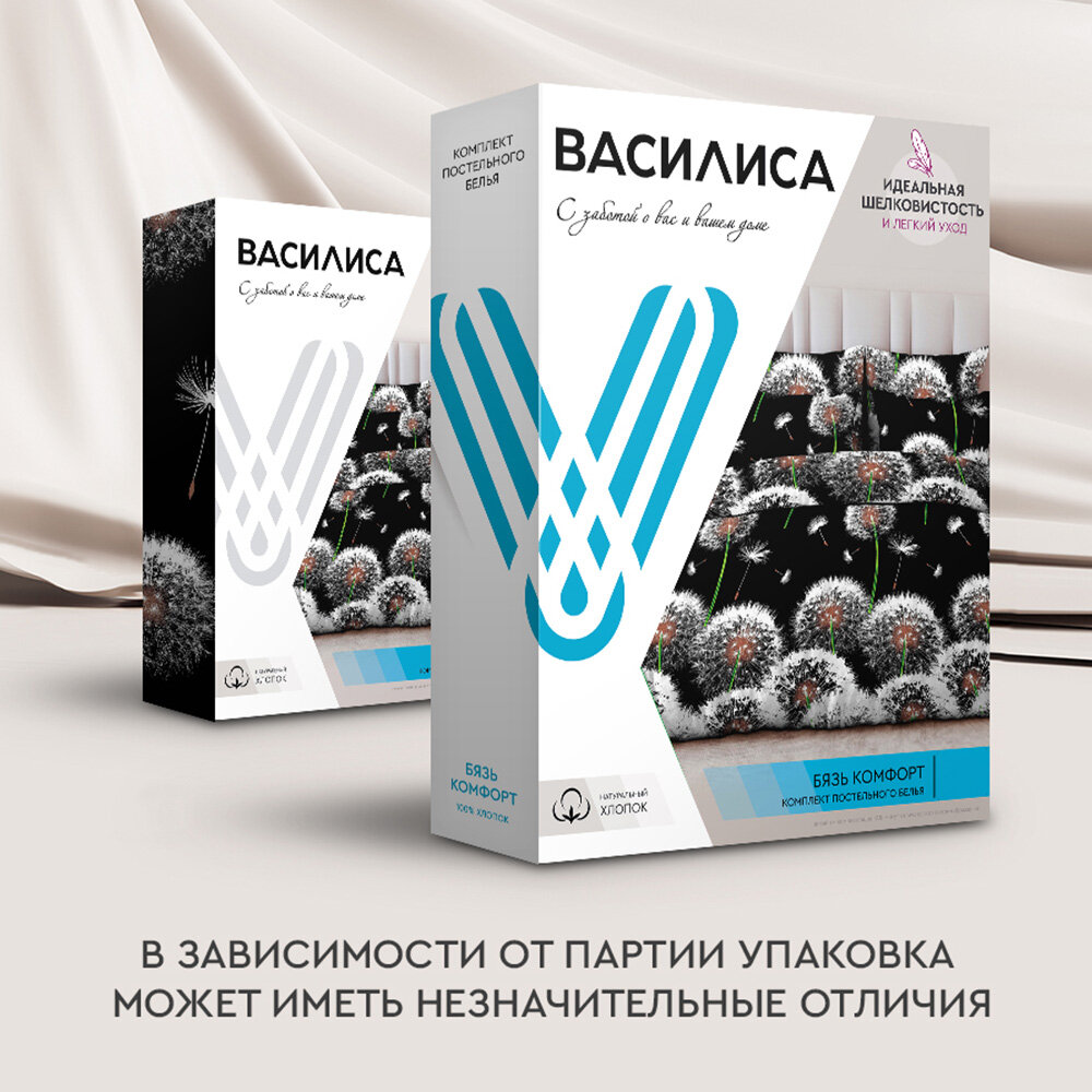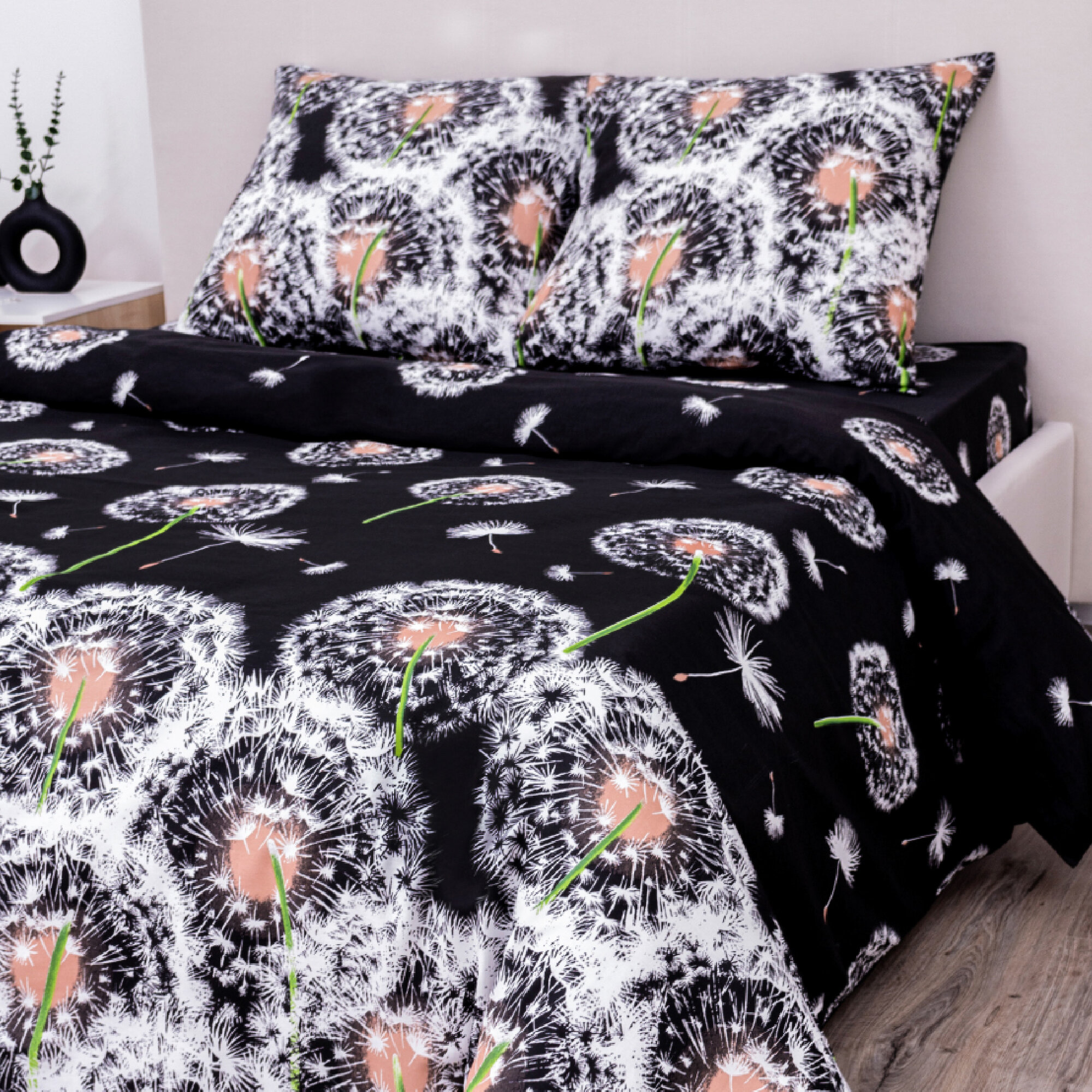 Постельное белье Василиса Белые одуванчики, бязь, евростандарт, черный/белый