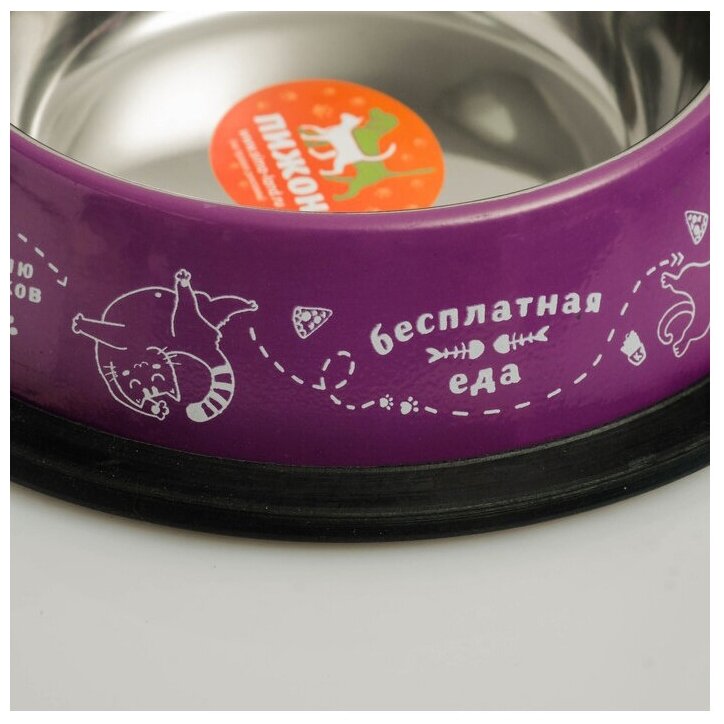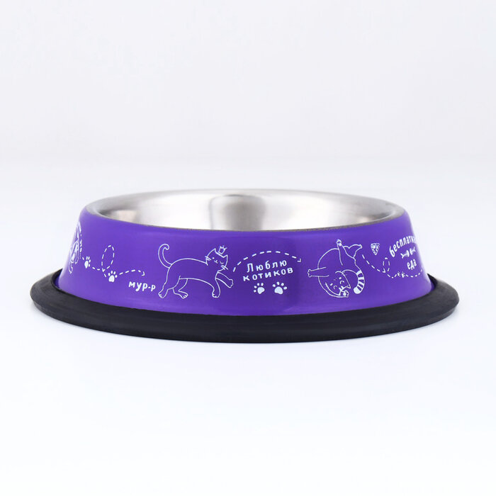 Миска для кошек Пижон, с нескользящим основанием, с цветными полосками, фиолетовая, 470 мл