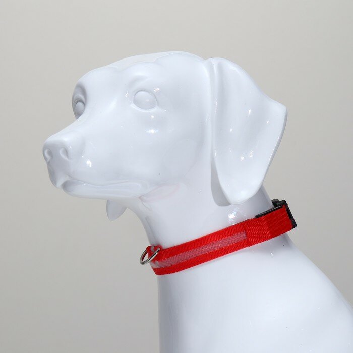 Ошейник с подсветкой размер М, ОШ 40-48 х 2,5 см, 3 режима свечения красный, 1279891