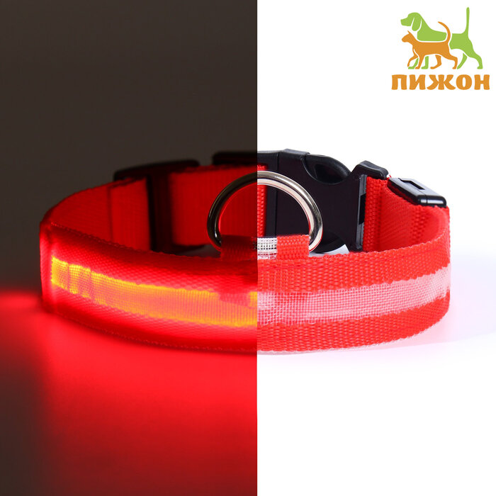 Пижон Ошейник с подсветкой, размер М, ОШ 40-48 х 2,5 см, 3 режима свечения, красный