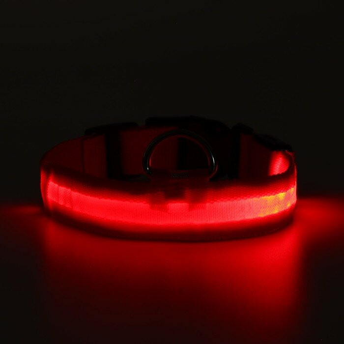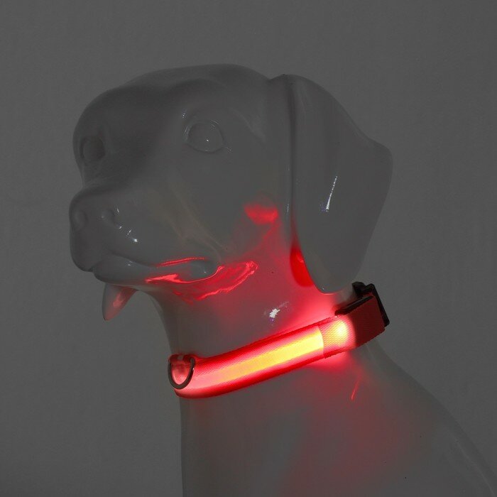 Купить Ошейник с подсветкой, М, 40-45 см, 3 режима свечения, красный