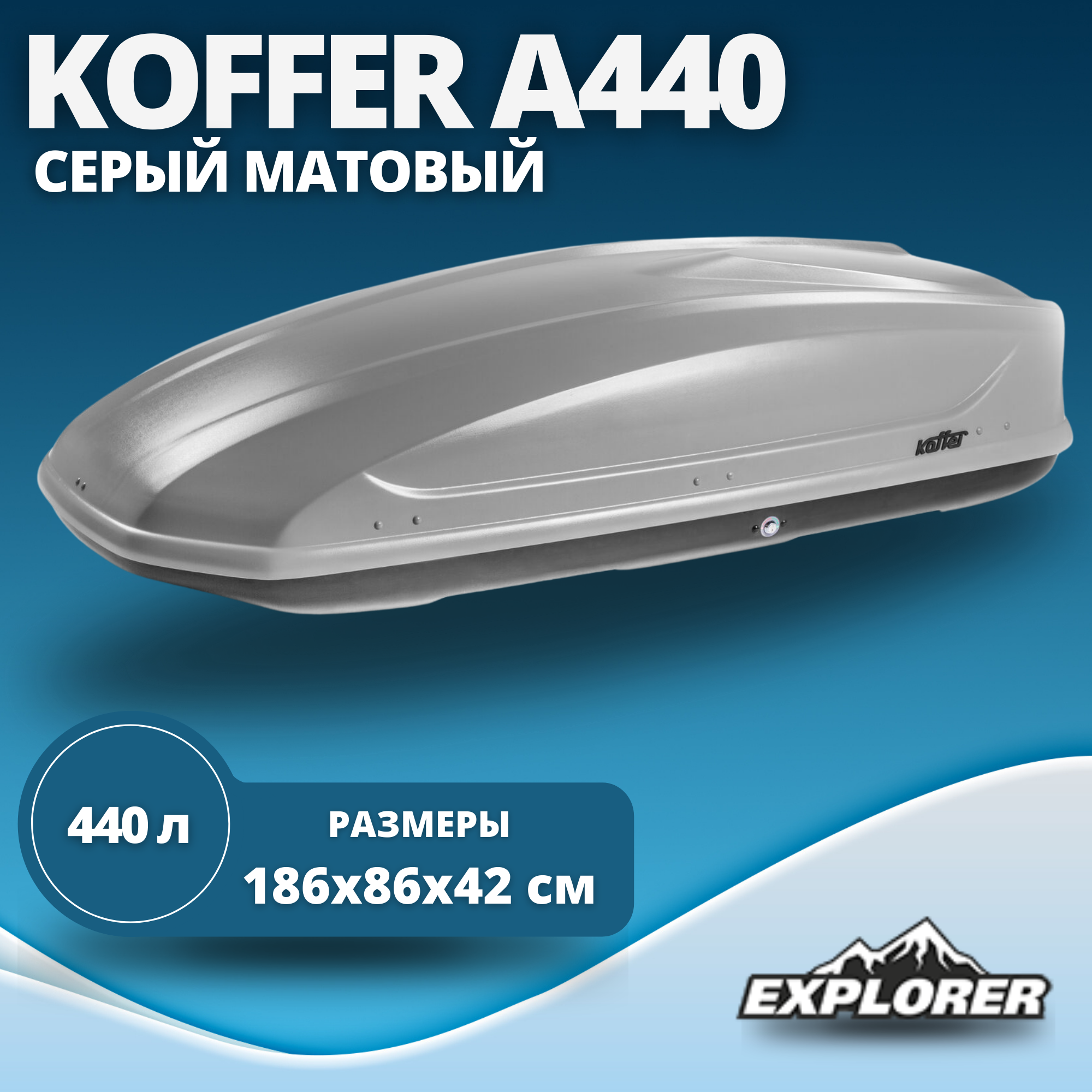 Автомобильный бокс Koffer A440 186х86х42см 440л Серый Матовый