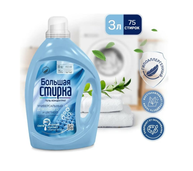 Большая стирка Гель для стирки Universal 2 в 1, большая стирка, 3 л