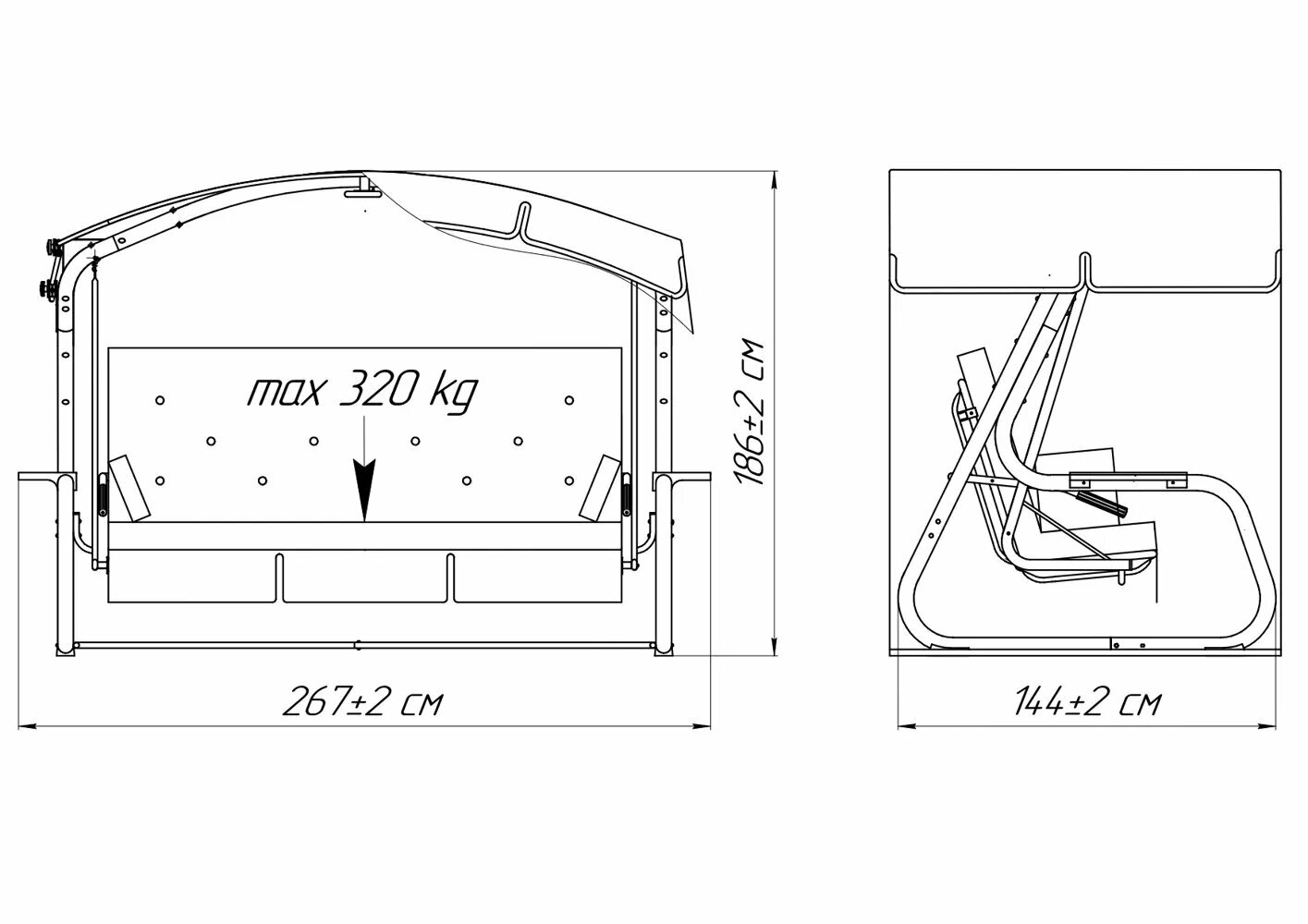 | Ширина качелей | 266 см |