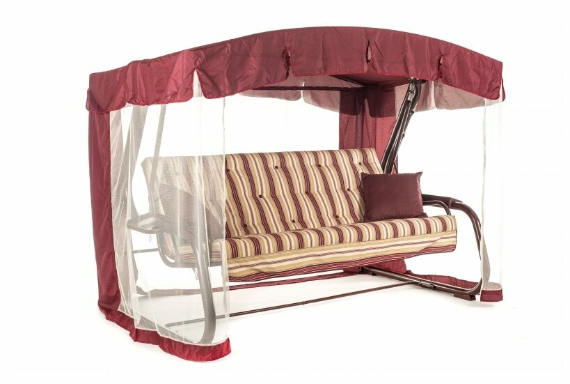 Качели садовые 4-х местные Ольса Саванна каркас бордовый, ткань полоска с1003