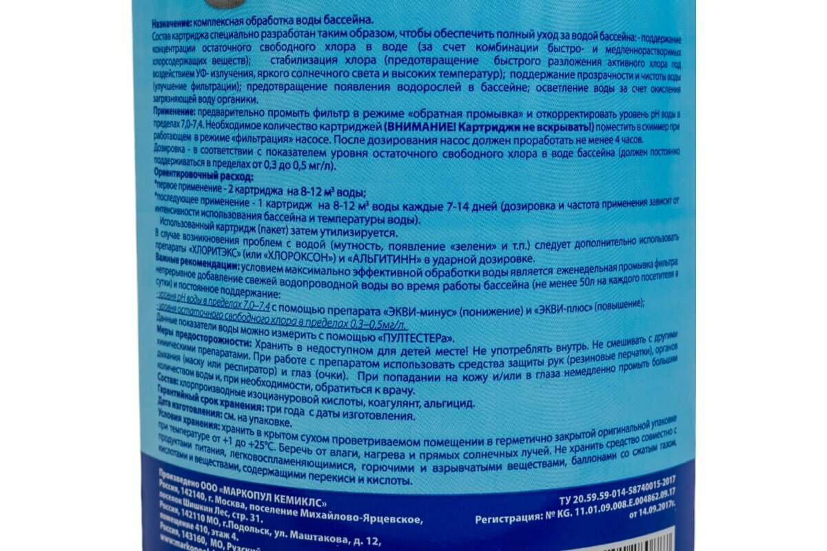 Мультиэкт 6 в 1 (0,8 кг): Комплексное средство в картриджах для обеззараживания и очистки воды бассейна. Маркопул Кемиклс
