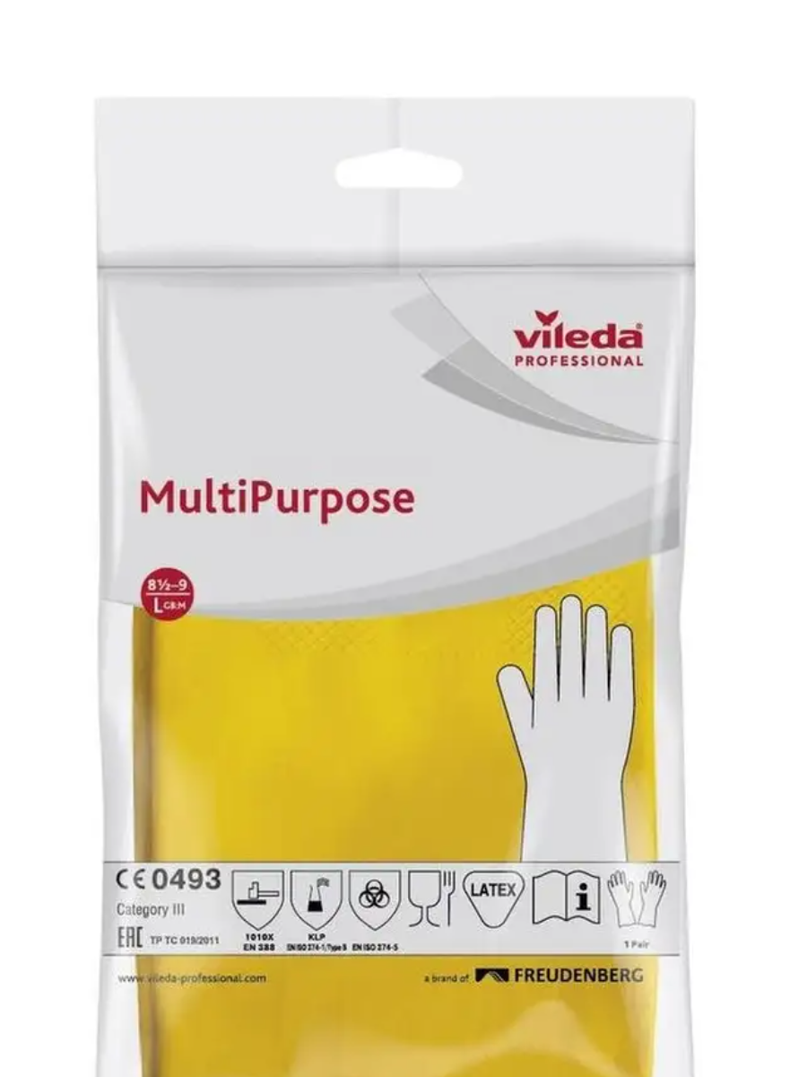 Перчатки латексные Vileda MultiPurpose, желтые, размер 9 (L) 1 пара (100760)