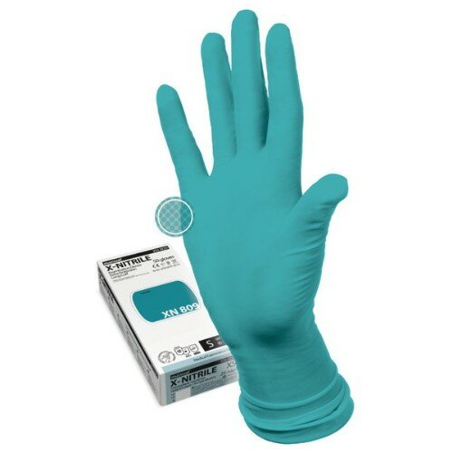 Перчатки нитриловые удлиненные X-NITRILE Manual XN809, цвет: зеленый, размер: S, 50 шт (25 пар)