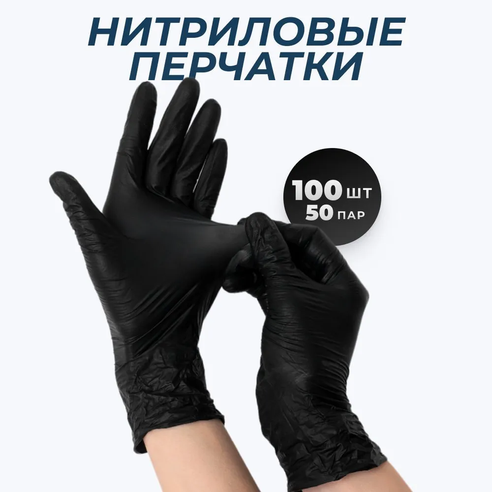 Перчатки одноразовые нитриловые смотровые NitriMax, нестерильные, неопудренные, черные, размер M, 50 пар в упаковке