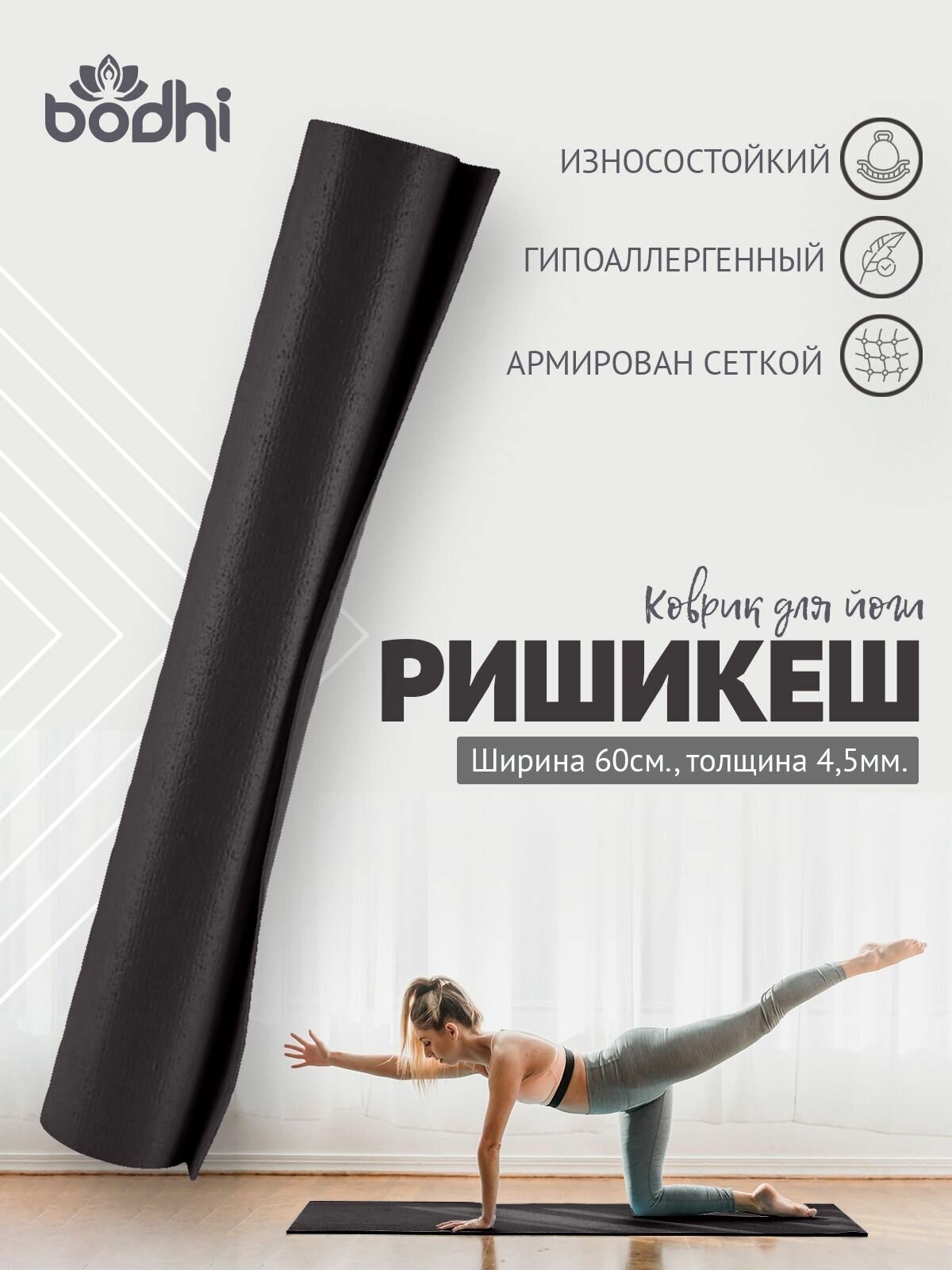 СохранитьКоврик для йоги фитнеса Rishikesh Ришикеш, черный, 173 х 60 х 0,45 см, прочный и нескользящий из Германии, Bodhi Бодхи интересное: