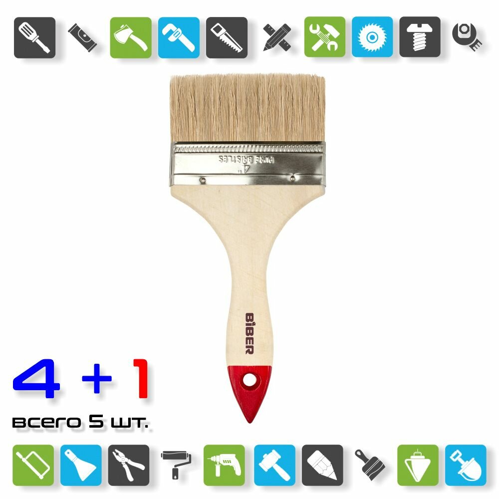 Купить Кисть флейцевая Biber 31116 Эконом 100 мм / x 5 шт