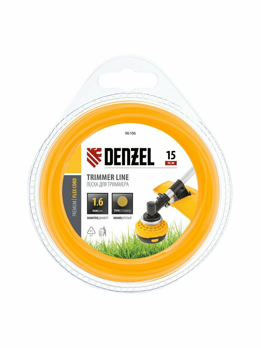 Купить DENZEL Леска для триммера, круглая 1,6 мм х 15 м, блистер Flex cord Denzel, ( 96106 )