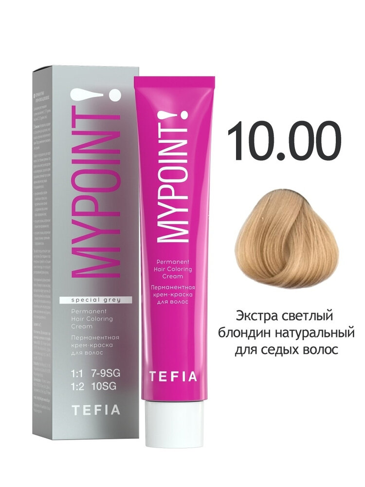 Купить TEFIA, MYPOINT, 10-00, Крем-краска экстра светлый блондин, натуральный, для седых волос, 60 мл