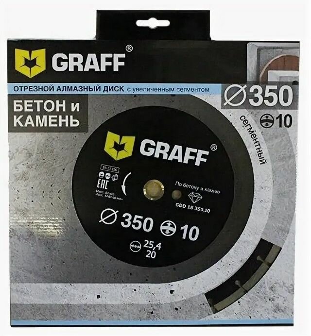 Graff Алмазный диск сегментный по бетону и камню 350x10x3.4x25.4-20 мм GDD 18 350.10/19350 интересное: