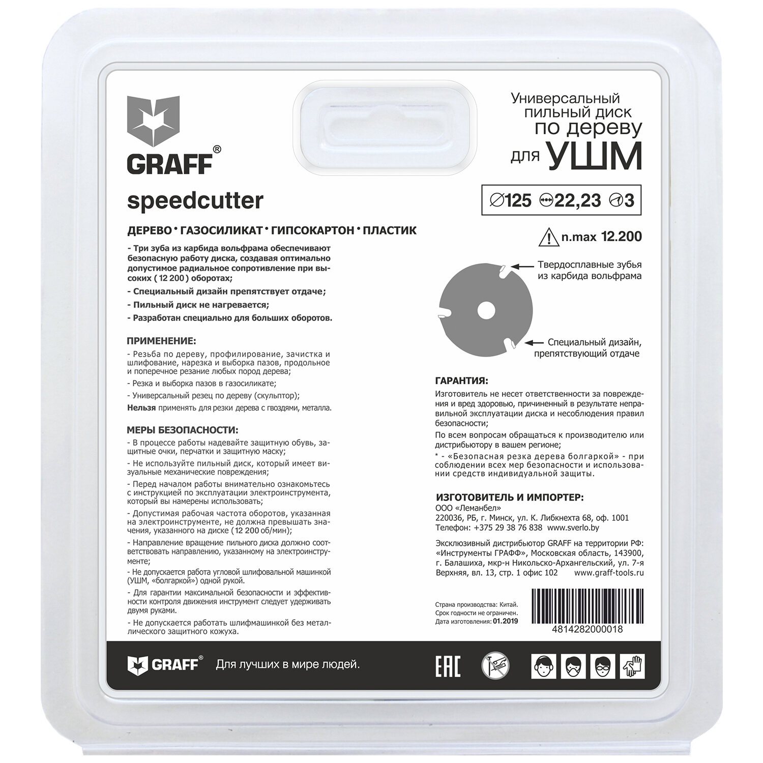 GRAFF Диск пильный по дереву для угловой шлифмашины "Speedcutter", диаметр 125 мм