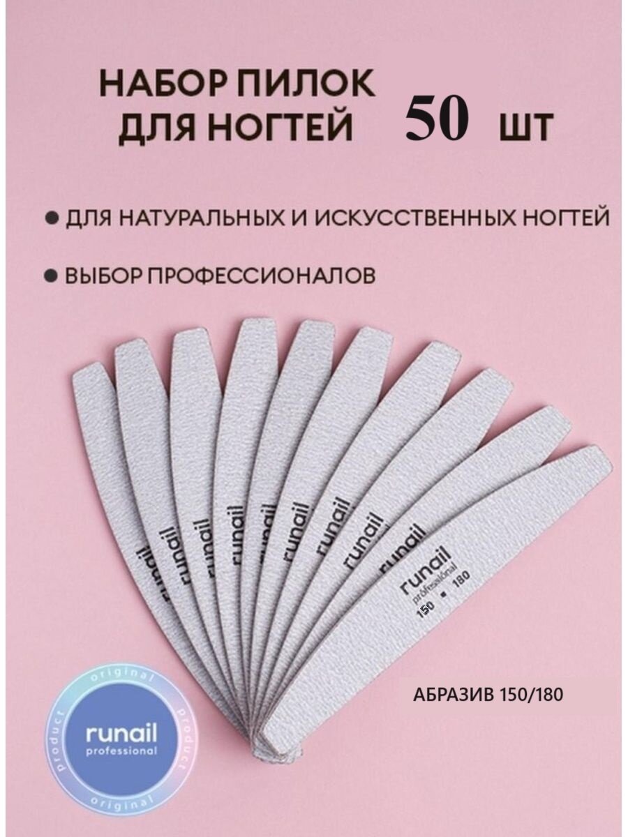 RuNail, пилка для ногтей полукруглая (серая, 150/180)
