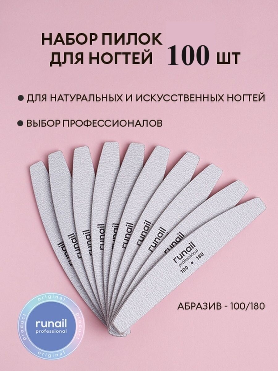 Runail Профессиональная пилка для искусственных ногтей, 100/180 грит