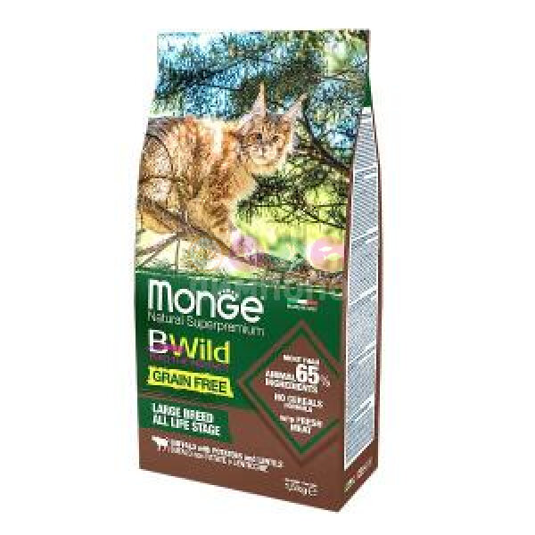 Monge Cat BWild Grain Free Large Breed All Life Stage Buffalo Potatoes Lentils / Сухой Беззерновой корм Монж Бивайлд для Крупных кошек всех возрастов мясо Буйвола картофель чечевица 1,5 кг