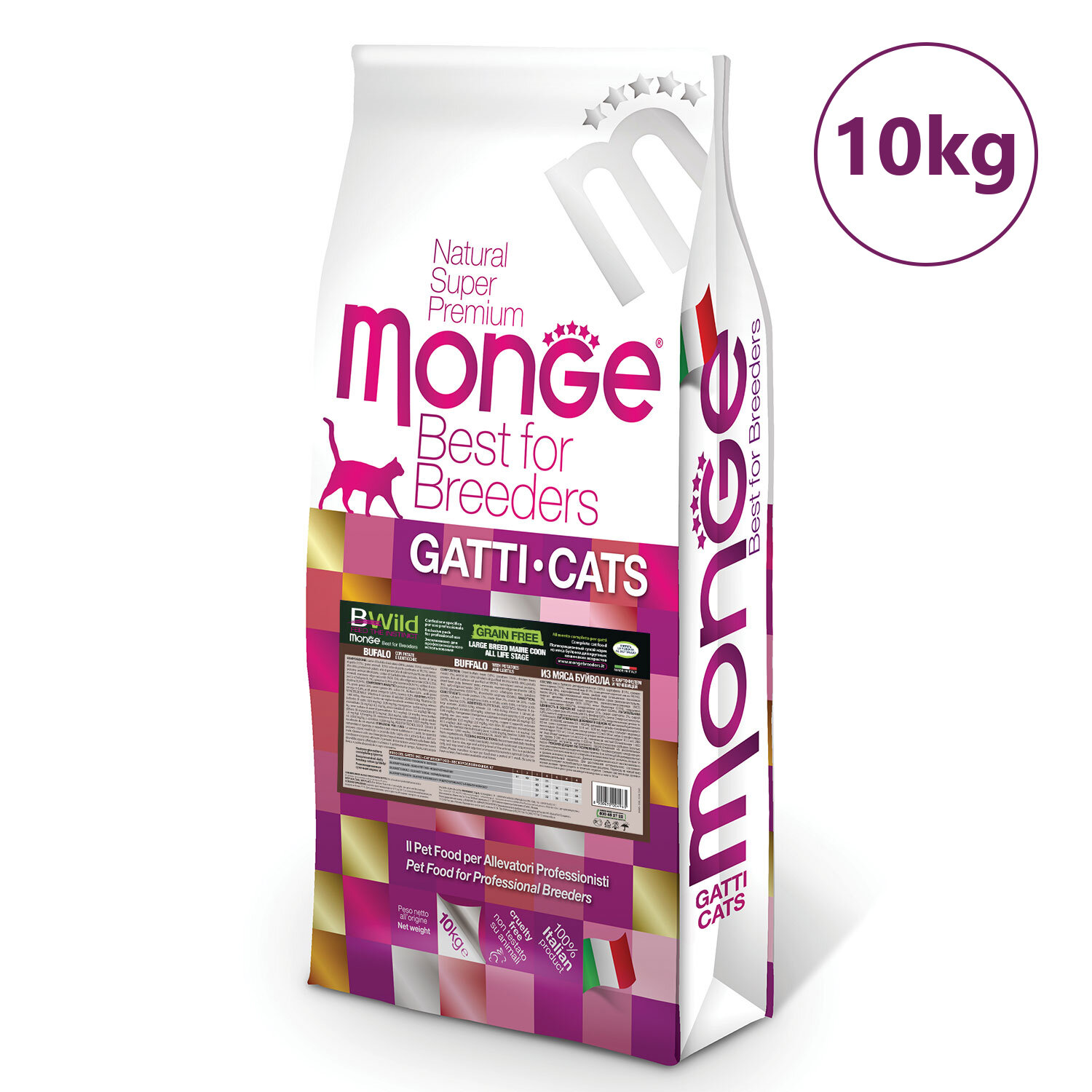 Monge Cat BWild Grain Free корм для взрослых кошек крупных пород, беззерновой, мясо буйвола 10 кг
