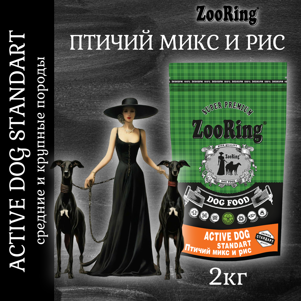 ZooRing Active Dog Standart, Сухой корм для взрослых Активных собак, Птичий Микс, 2,0 кг.