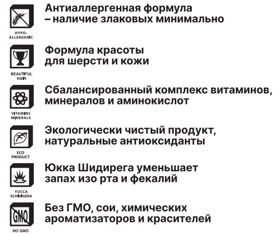 | Плюсы: | Корм российского производства, отсутствие аллергии, состав, цена |