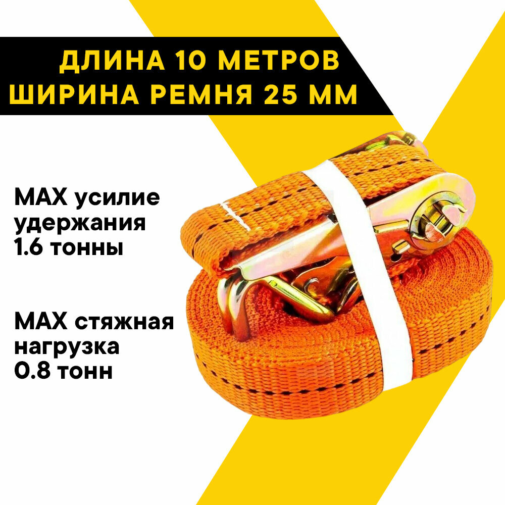 Купить Стяжка для груза с трещоткой 10м, 0,8-1,6т, 25мм (ТОП авто)