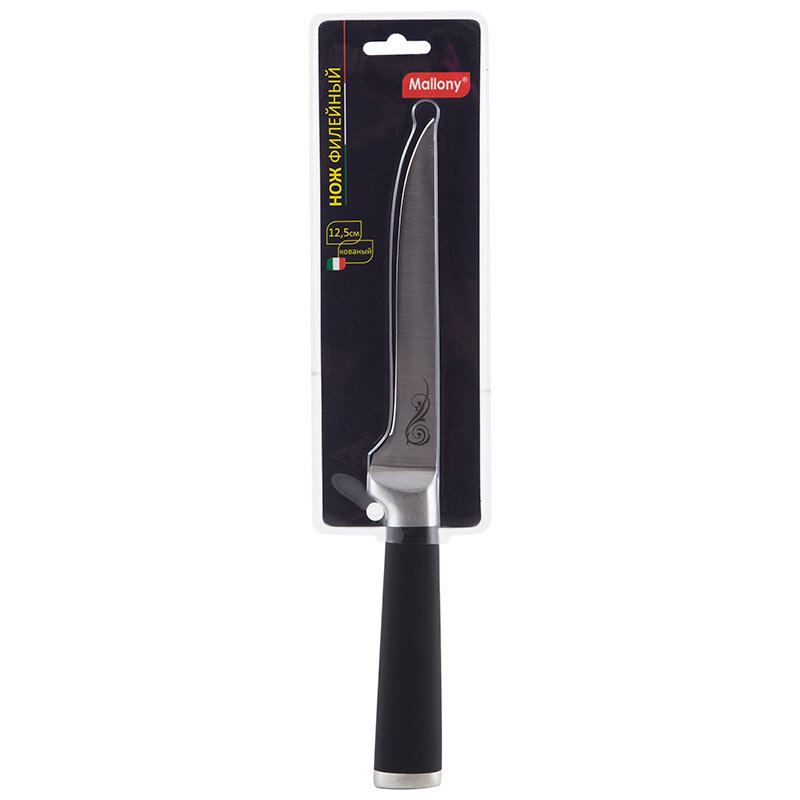 Нож филейный (лезвие 12,5см) ручка прорезин., кованый с рис. MAL-04RS Mallony BL 985364