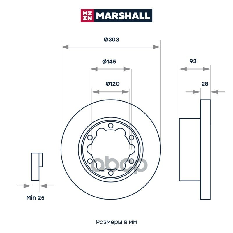 | Минимальная толщина диска | 25 мм |