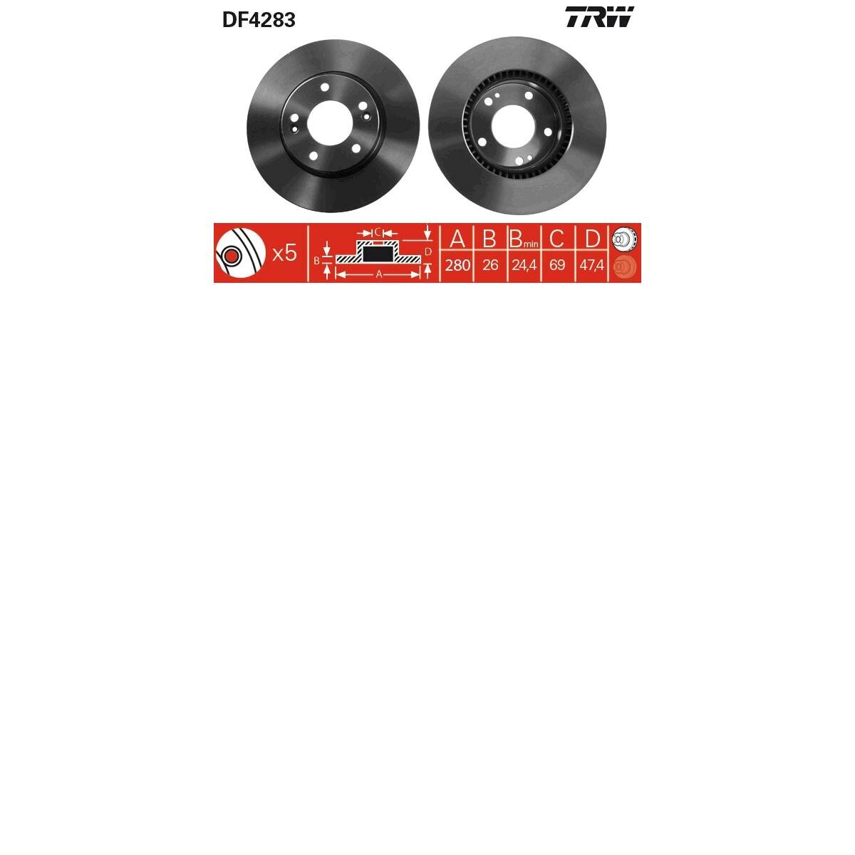 TRW DF4283 Торм.диск пер.вент.[280x26] 5 отв.