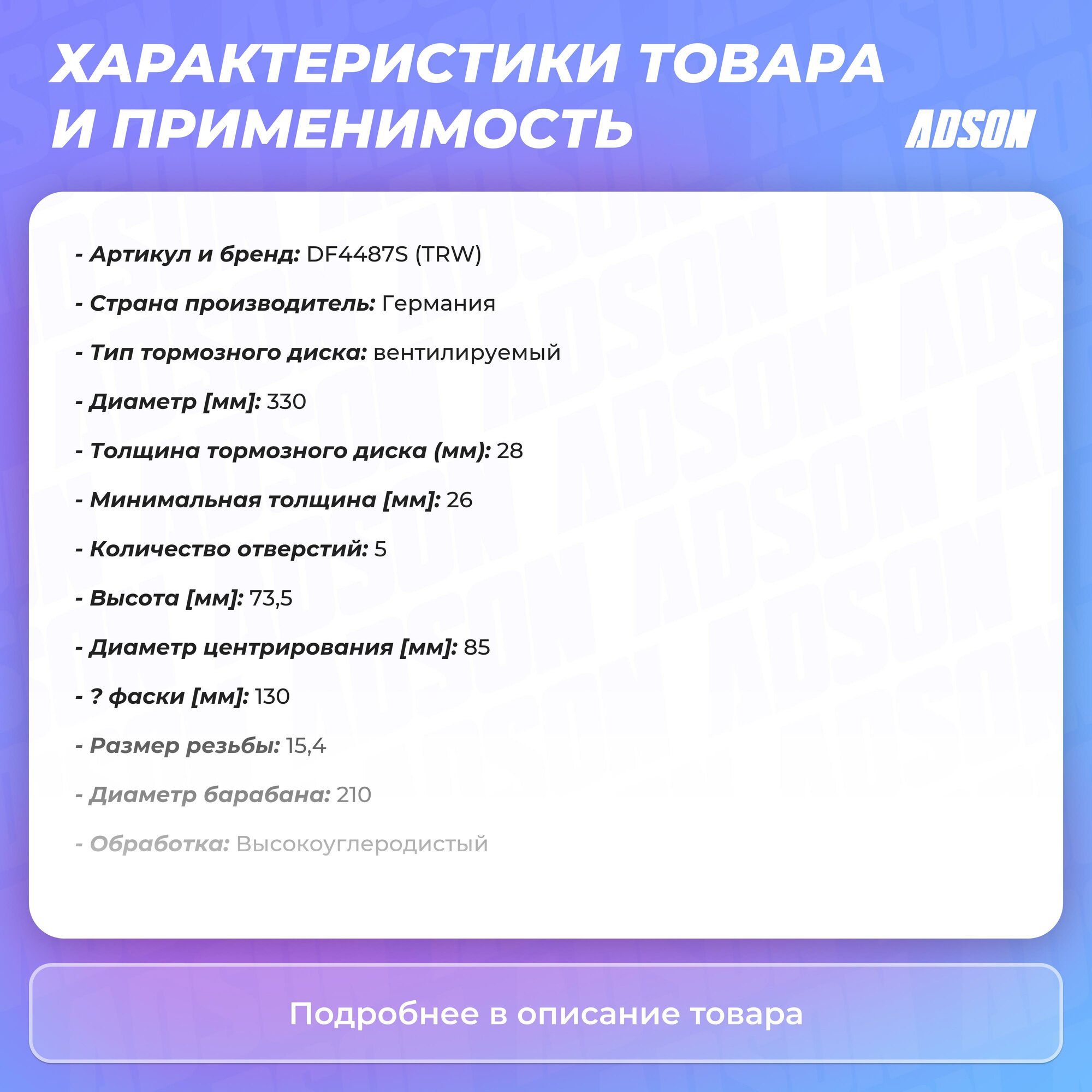 Комплект тормозных дисков TRW / арт. DF4487S - (1 шт)