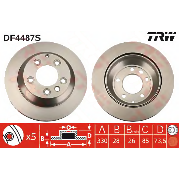 Торм.диск Зад.вент.[330X28] 5 Отв. TRW арт. DF4487S