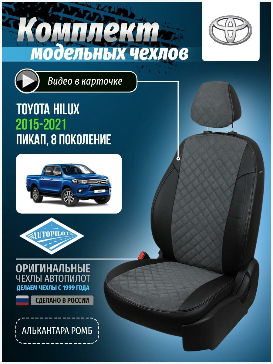 СохранитьЧехлы на автомобильные сидения Автопилот для Toyota Hilux VIII с 15г. (Алькантара ромб, Черный + Серый) интересное: