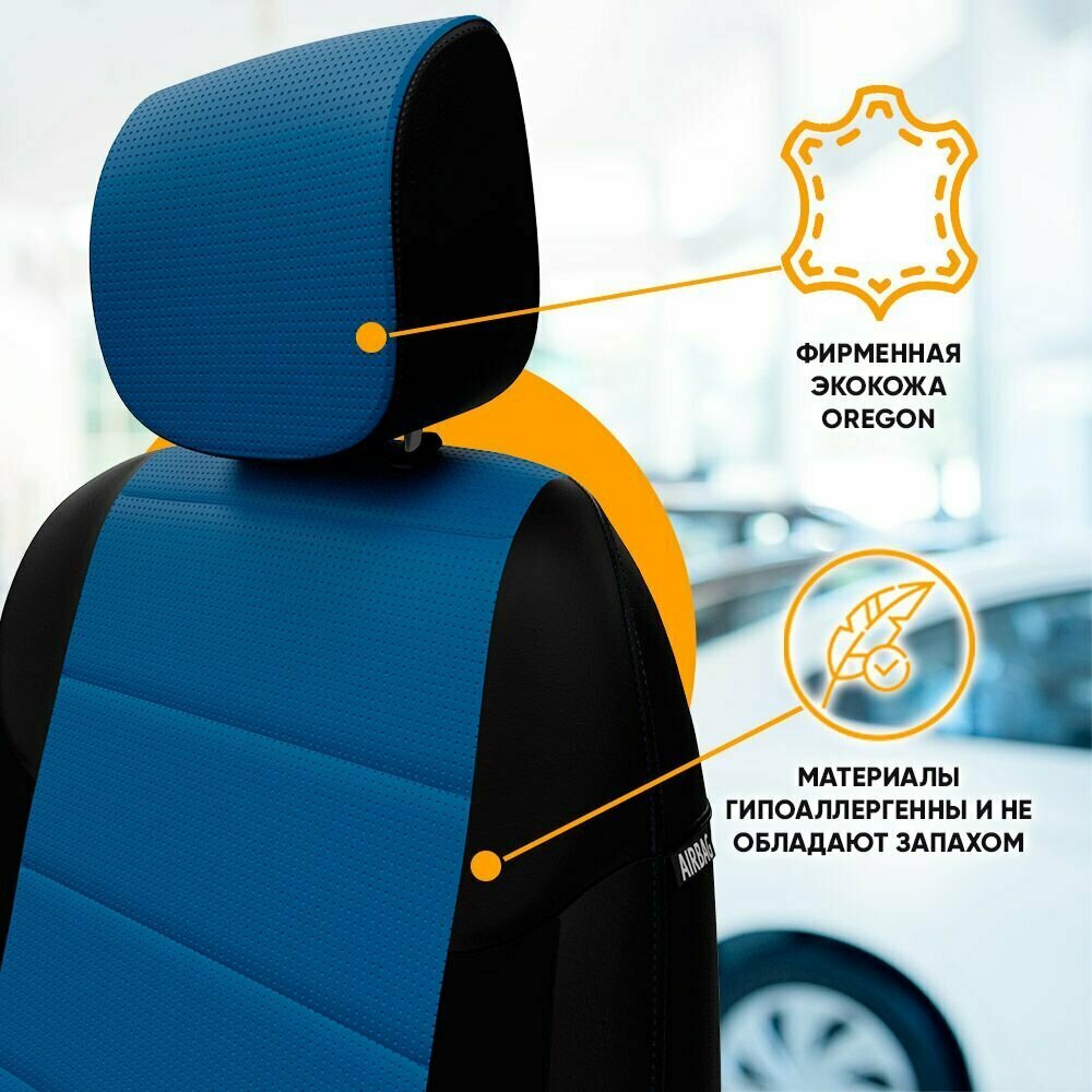 Комплект чехлов Автопилот Экокожа Mazda 3 Sd (BK) c 04-13г. (Hb с 04-09г.) Черный + Синий