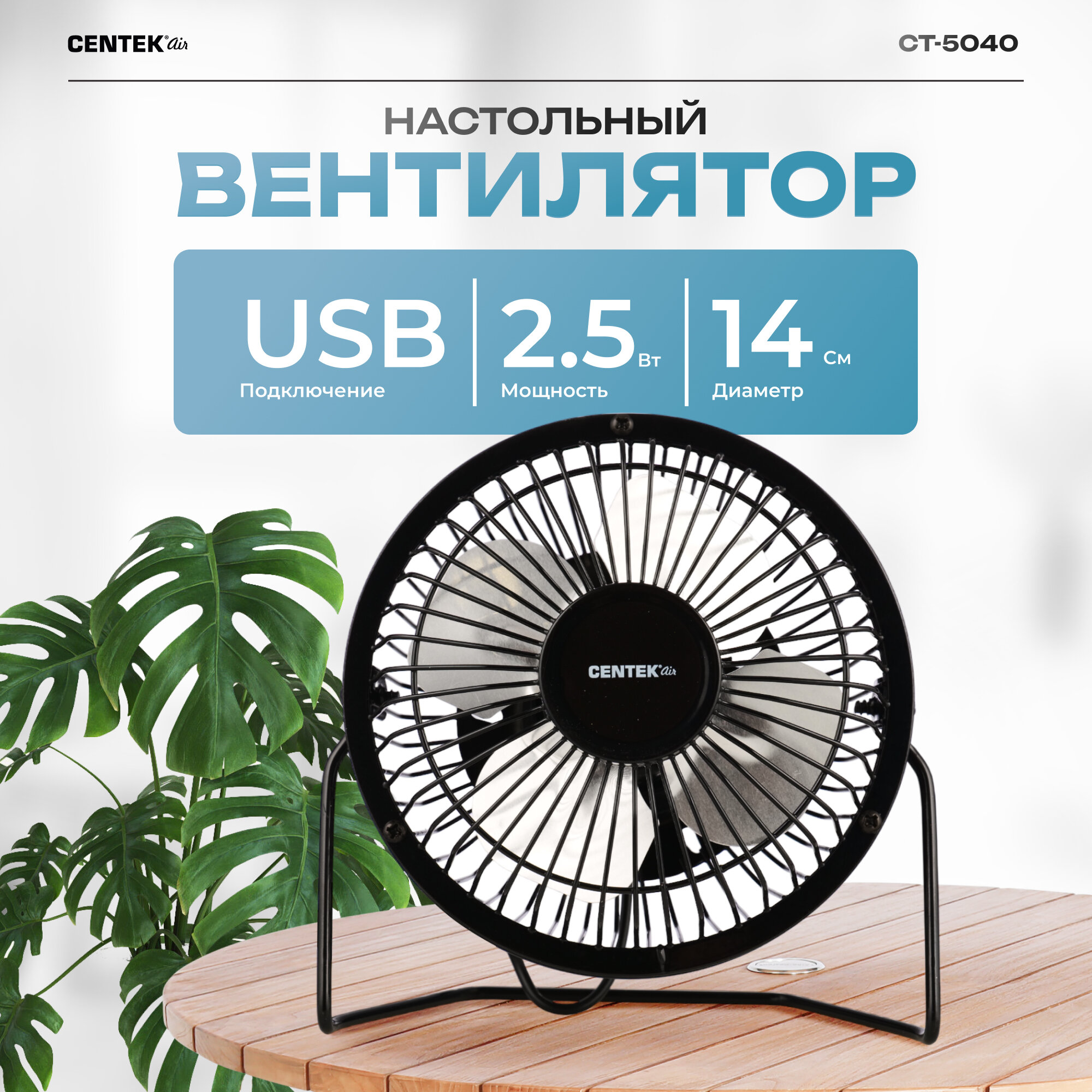 Вентилятор Настольный Centek Ст-5040 Black Металл,Решетка 14См,Usb Питание CENTEK арт. СТ5040