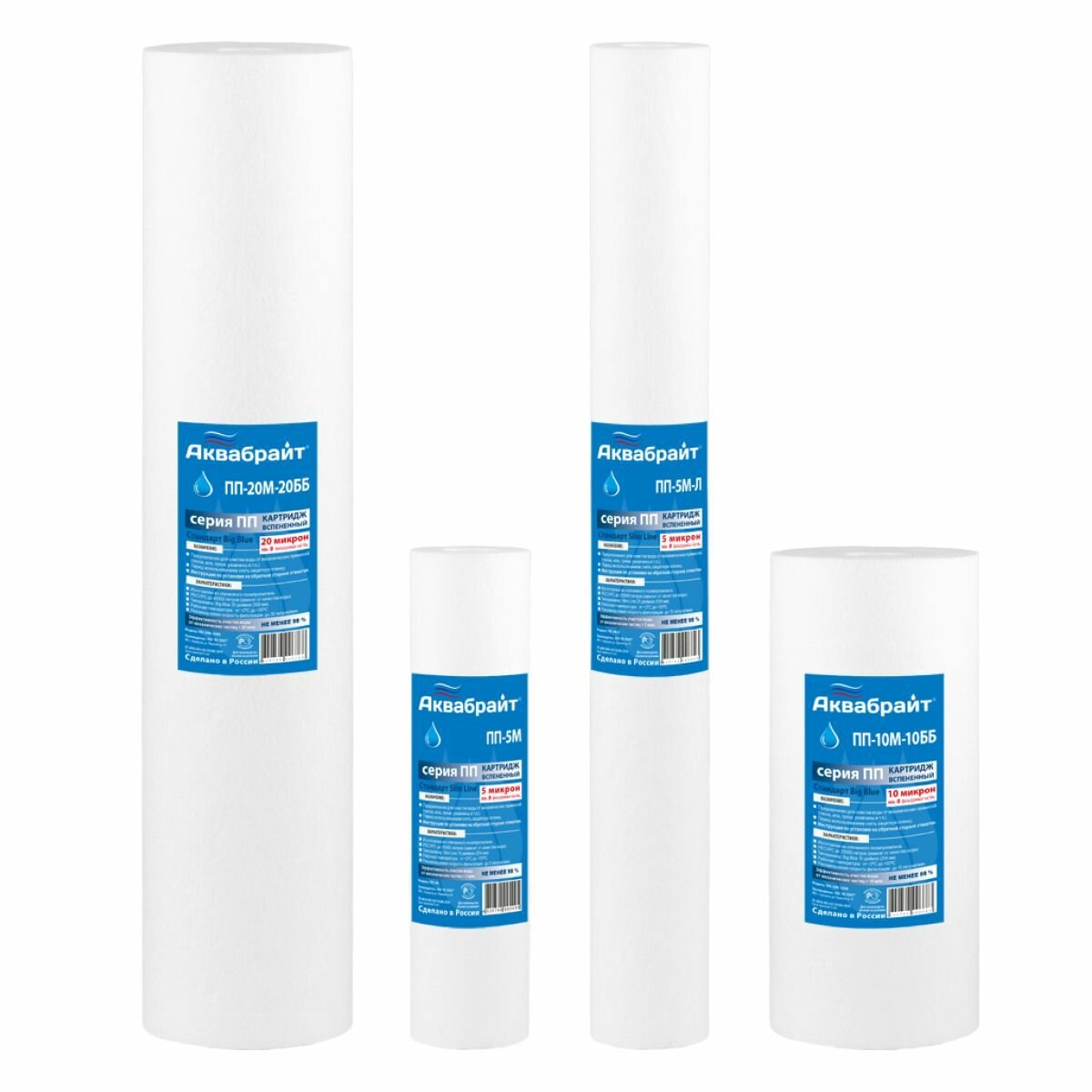 Картридж Аквабрайт ПП-5М-10ББ Big Blue, полипропилен, 5 микрон, 10", 10шт