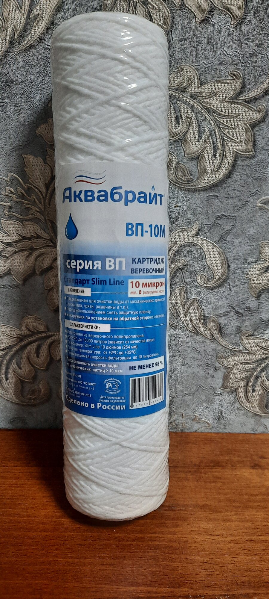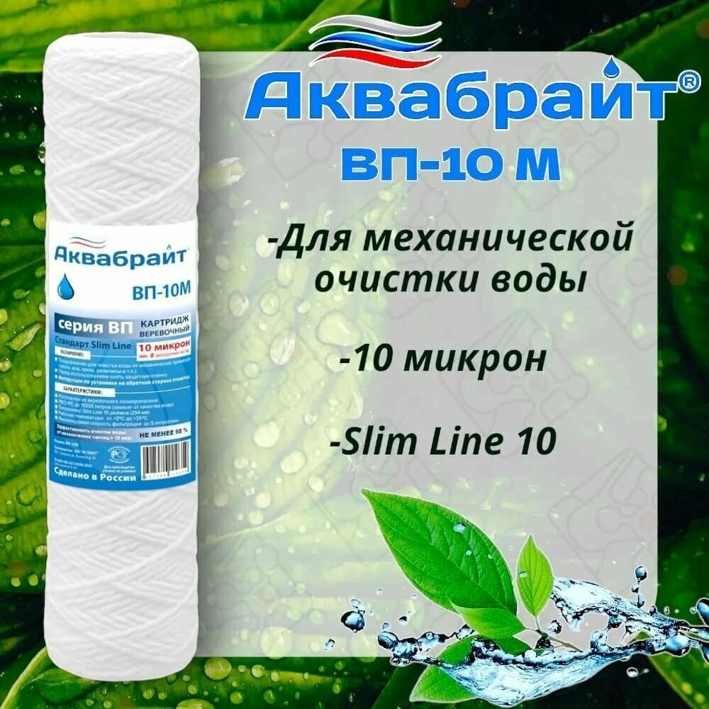 ВП-20М Аквабрайт, веревочный картридж из полипропиленового шнура для механической очистки воды, Slim Line 10 (10sl)