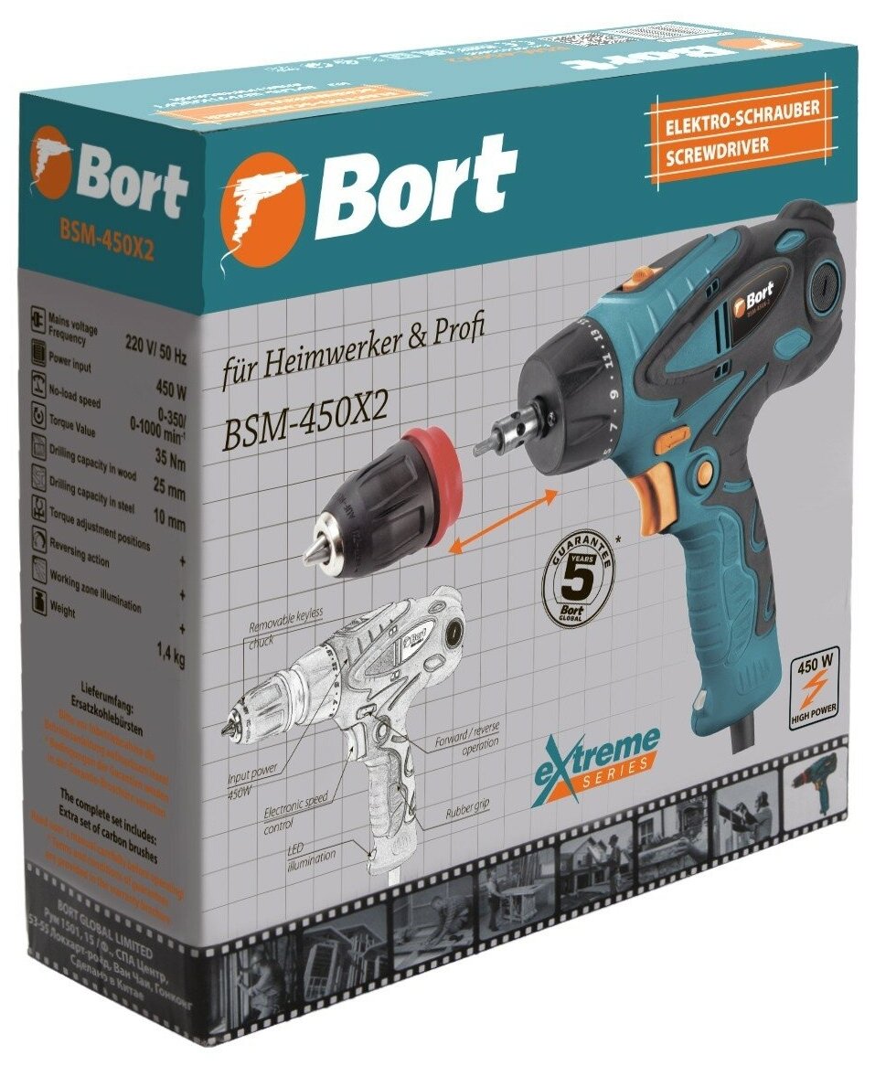 Дрель-шуруповерт сетевая BORT BSM-450X2