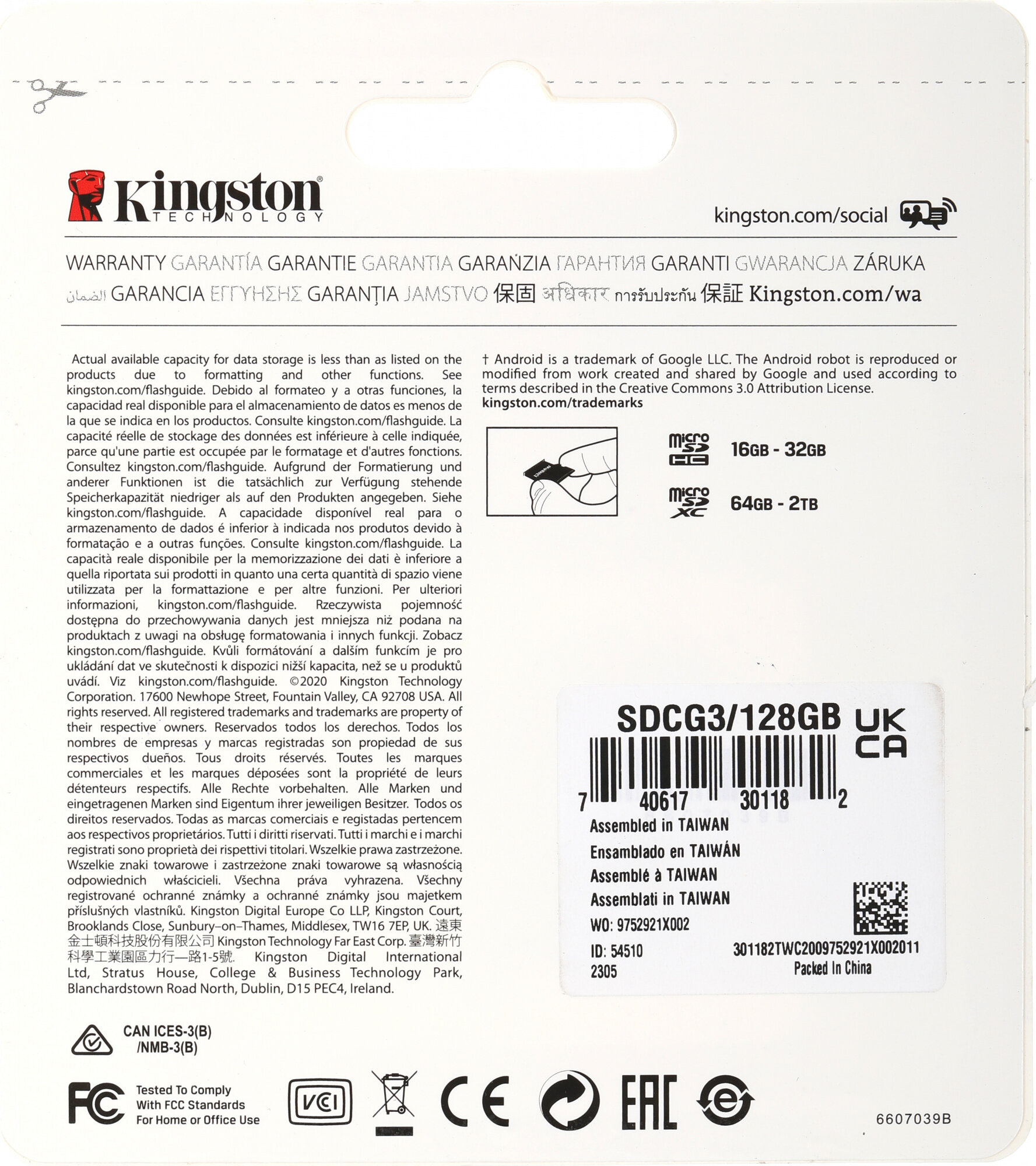 Карта памяти MicroSD 128Гб Kingston SDCG3/128GB