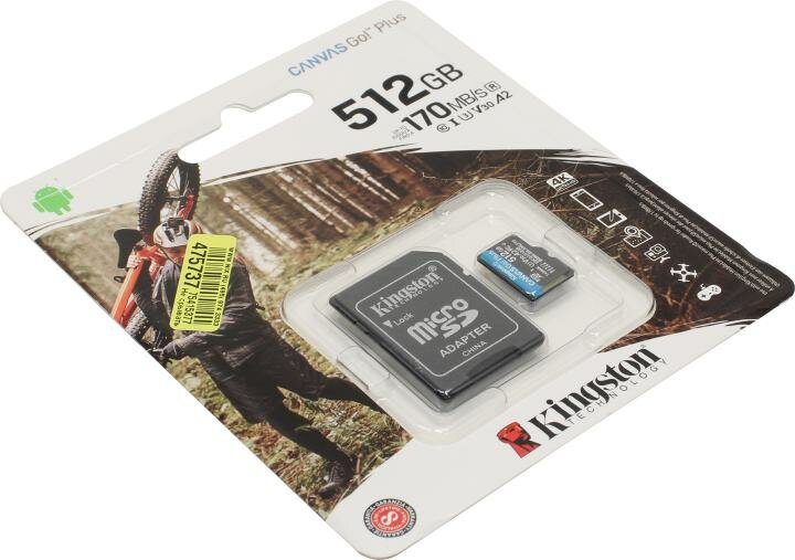 Карта памяти Kingston CANVAS Go! Plus - SDCG3/512GB - microSDXC UHS-I, U3, V30, A2 - 170/90МБ/с