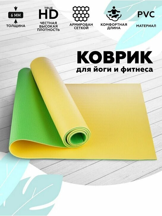 Коврик для фитнеса Original FitTools FT-YGM06S-BANANALIME, 190х61х0.6 см желтый/зеленый однотонный 1.7 кг 0.6 см