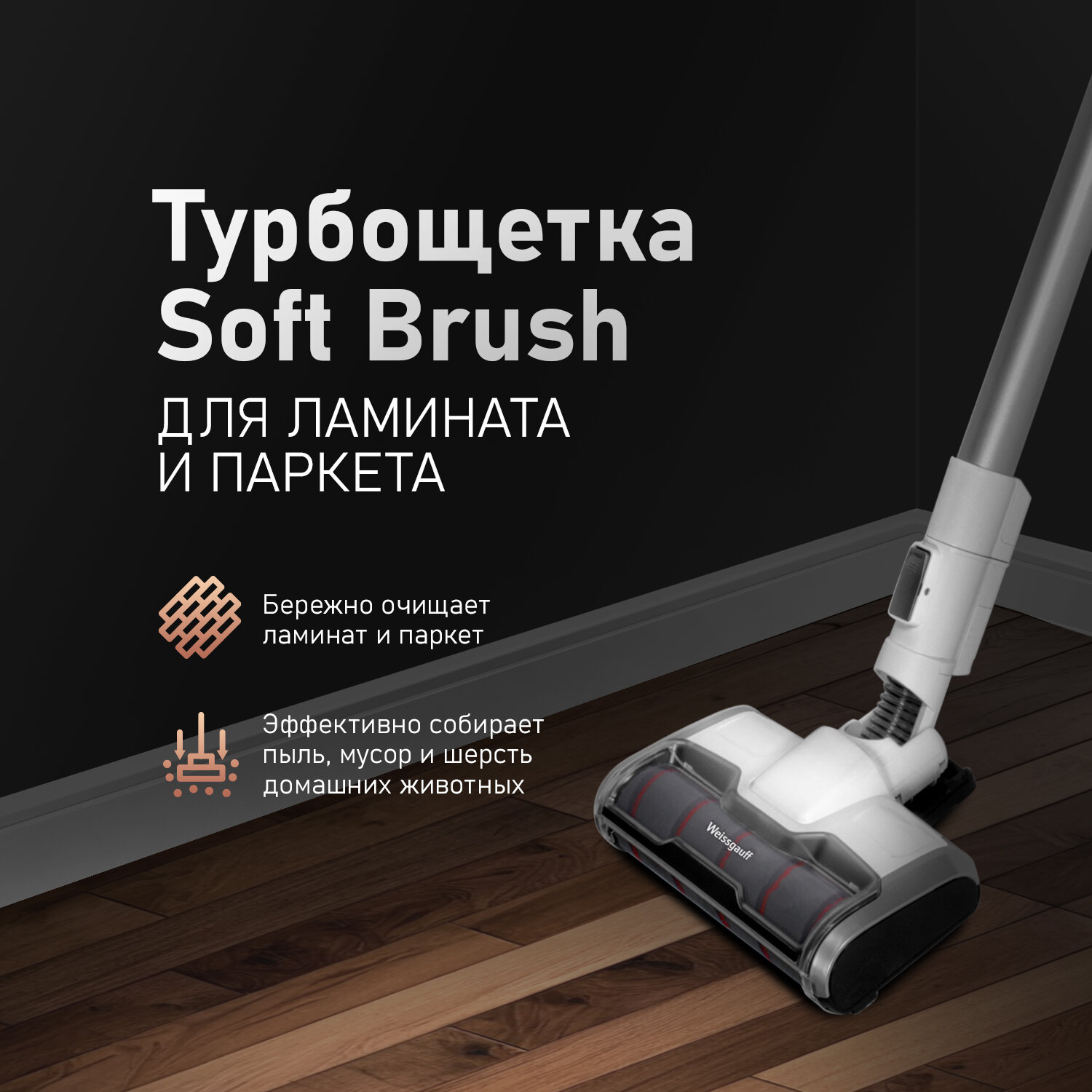 Вертикальный беспроводной пылесос Weissgauff V9 Turbo Cyclone Soft Brush интересное: