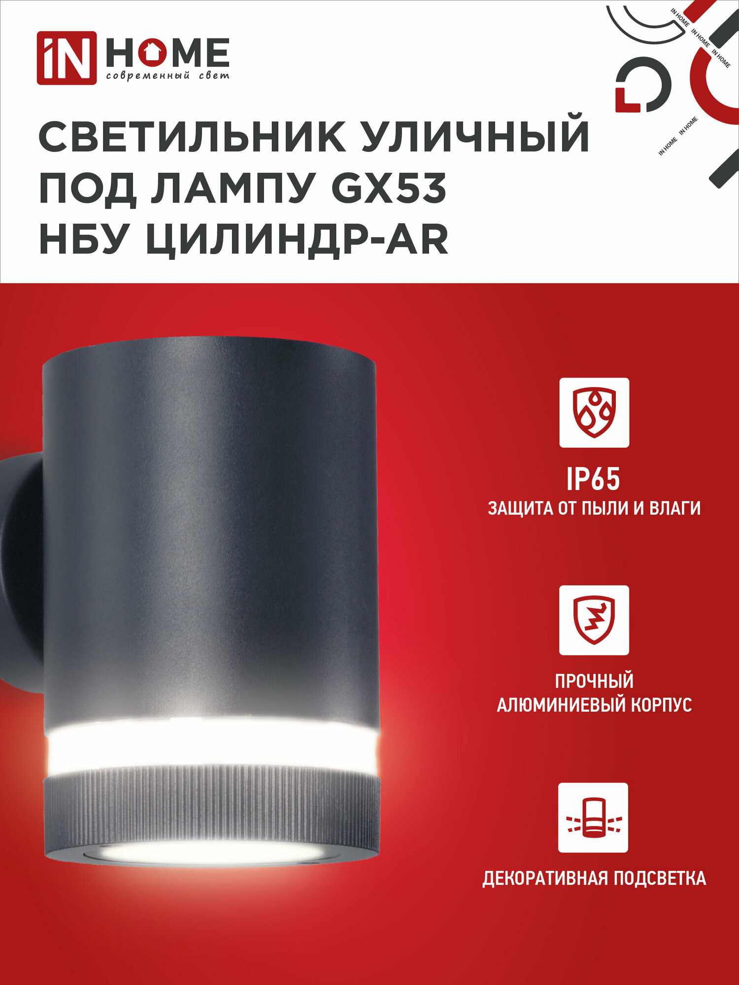 Светильник светодиодный GX53S-1B-ЦИЛИНДР GX53 IP65 230В уличный односторон. подсветка черн. IN HOME 4690612023519 ( 1шт. )