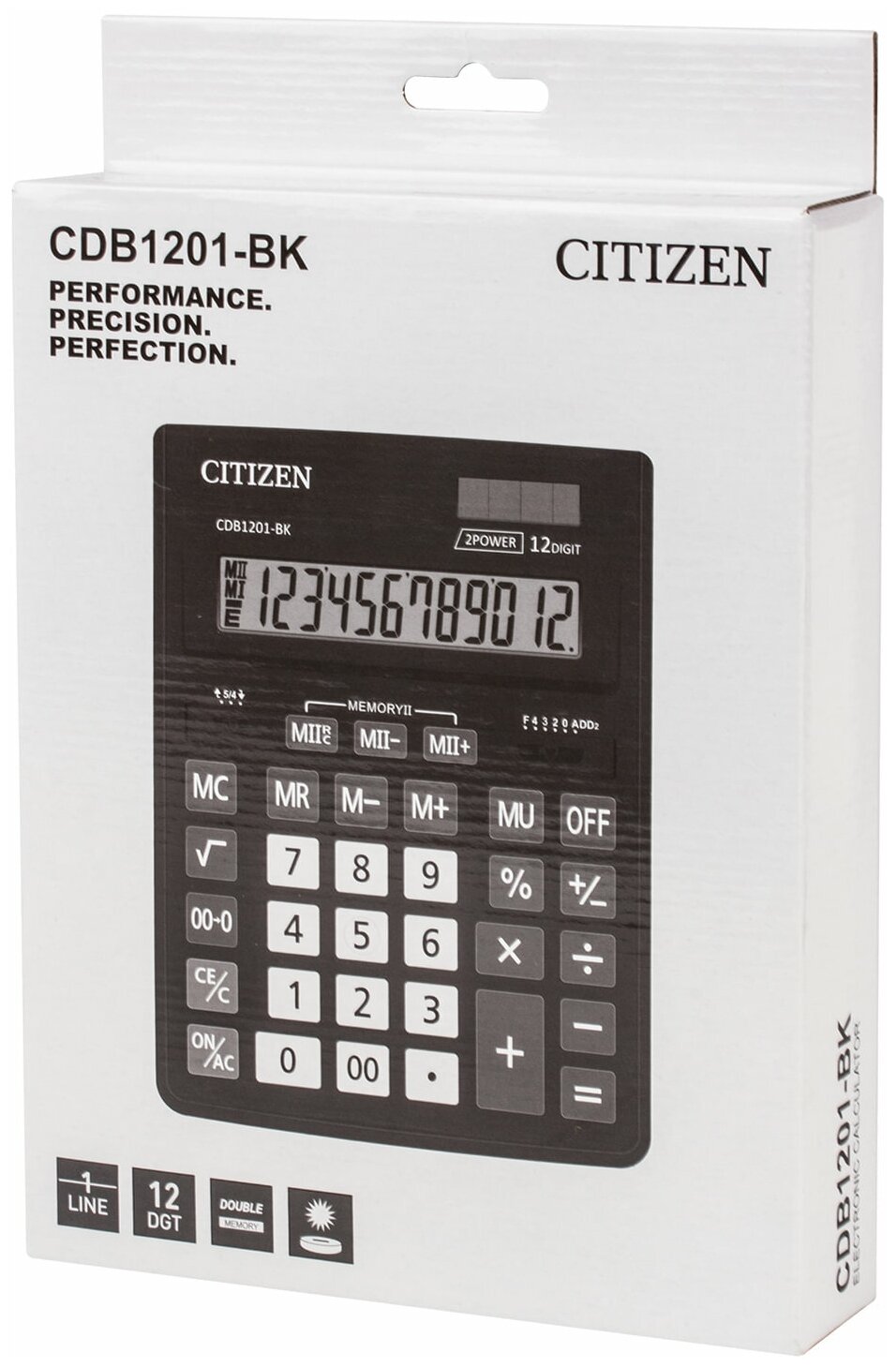 Купить Калькулятор настольный Citizen Business Line "CDB1201-BK", 12-разрядный, 155 х 205 х 28 мм, двойное питание, чёрный