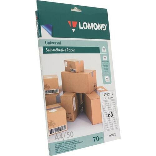 Самоклеящаяся бумага Lomond A4 2100215, 70 г/м2 50 листов, 65 делений (38 x 21.2 мм), белая, для этикеток, универсальная