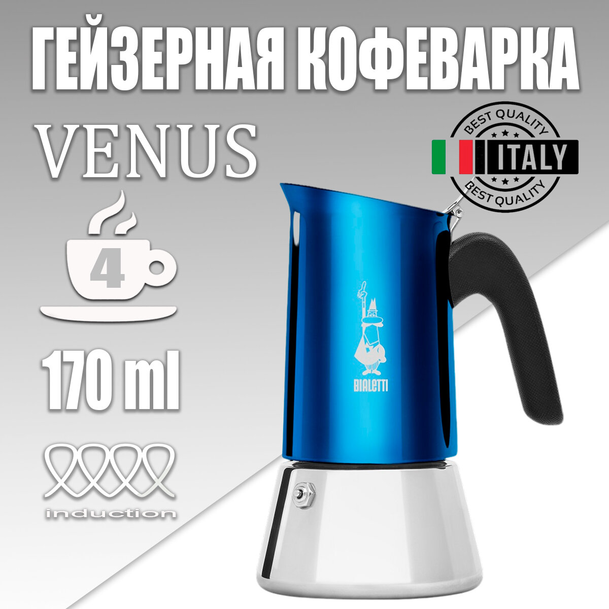 СохранитьГейзерная кофеварка Bialetti New Venus, 170 мл, 170 мл, синий интересное: