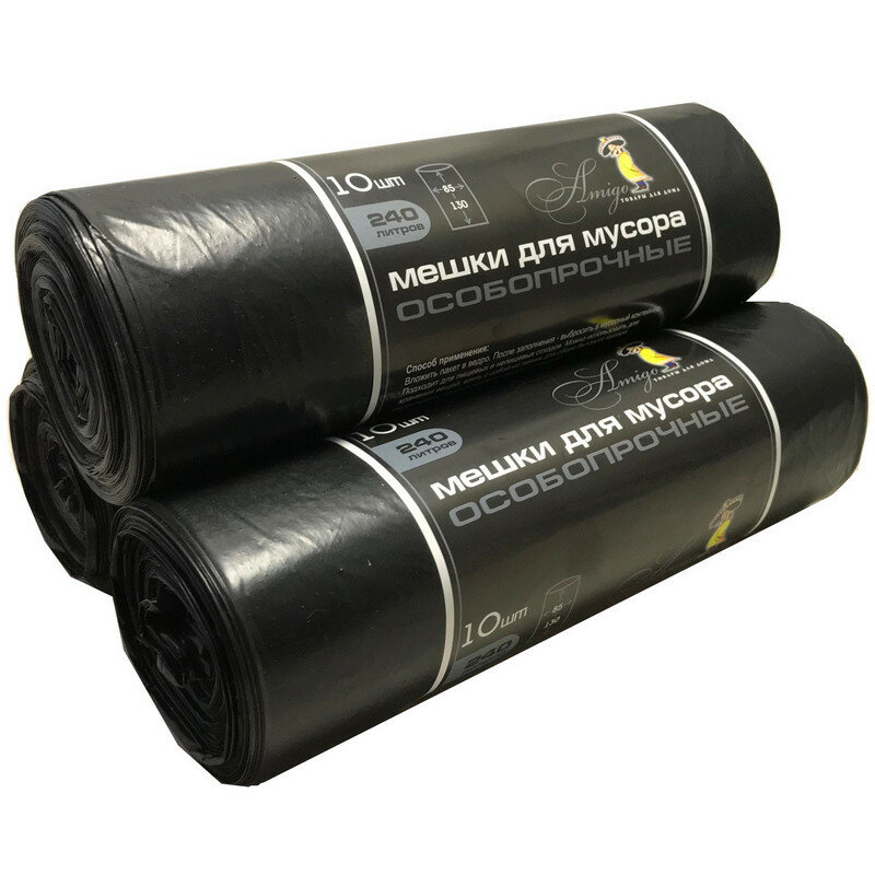 Мешки для мусора240 литров ПСД, 85x130, черный, 10 шт/рул , 1 шт
