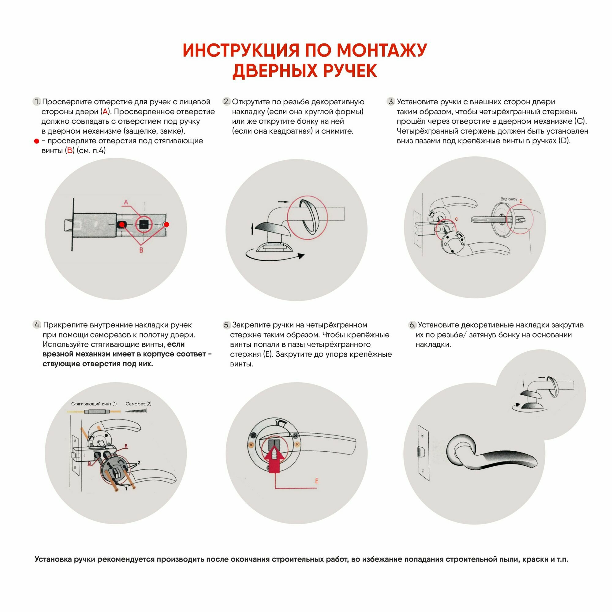 Ручка дверная межкомнатная медь с защелкой и заверткой без ключей комплект